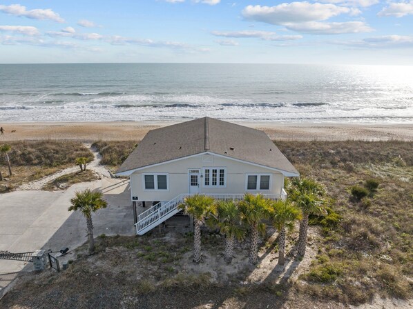 This beachfront residence is located on the North End of Wrightsville Beach, tucked away at the end of a private street, giving you the feel of your own private beach. It shares a spacious gated driveway with The Bluemoon Cottage (also bookable via Mira-Mar)!
