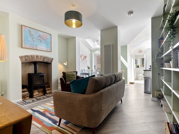 Stylishly decorated and furnished to a high standard, this exceptional home offers both comfort and charm in equal measure. The ground floor boasts a spacious open-plan kitchen, dining, and living area—ideal for socialising and relaxing—as well as a separate, dedicated second living room for added comfort and flexibility. There is also a small utility room here with a washing machine and drying rack available for guests.