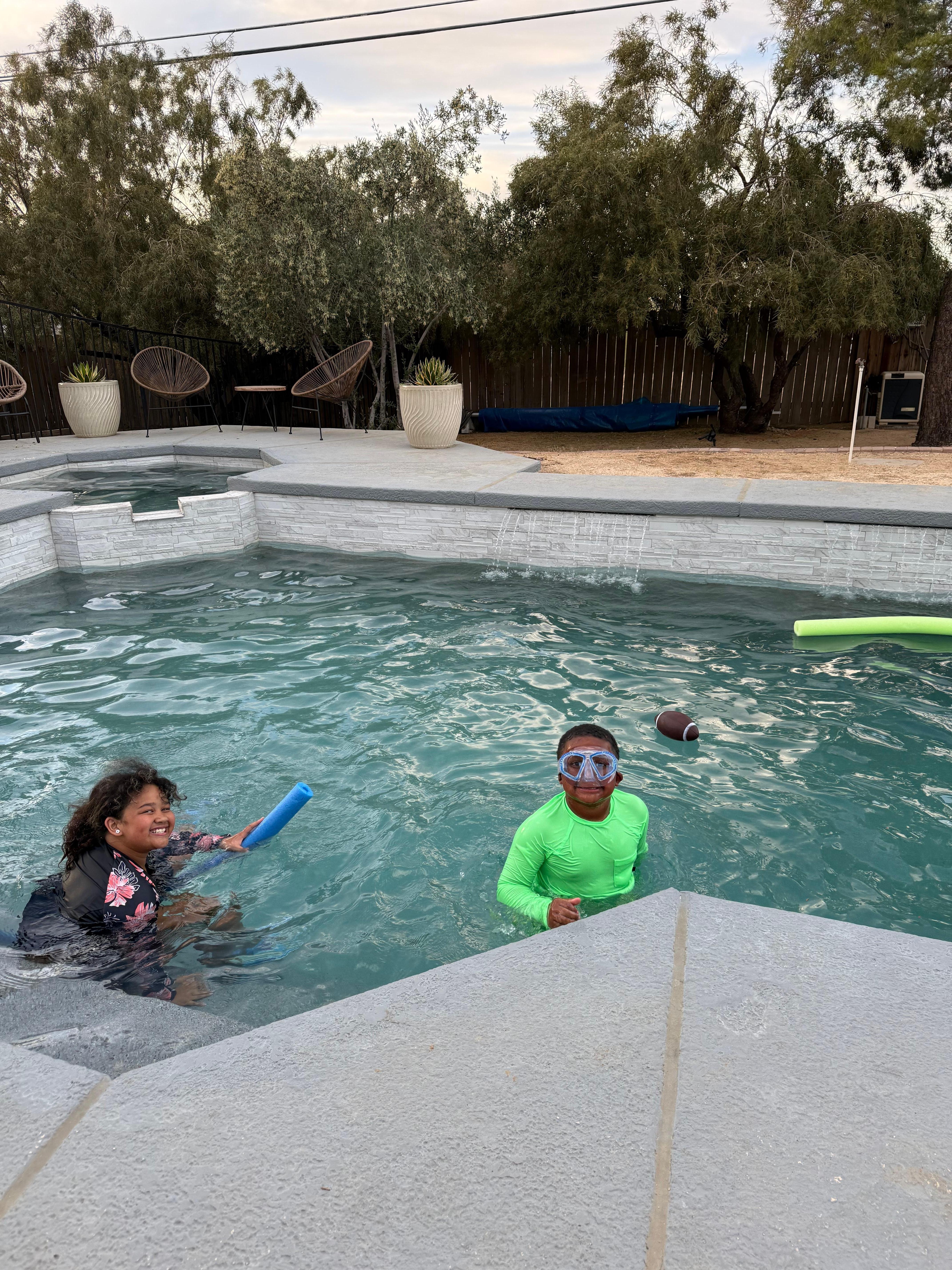 Please be advised that our pool is located in a desert environment, where dirt, twigs, insects, and leaves are commonplace. Occasionally, you may also encounter