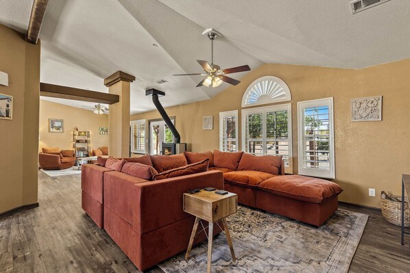 Stay connected with our fast internet and unlimited WiFi usage throughout the property. All TVs are smart TVs, allowing you to access your favorite streaming services using your personal accounts. The main living room features a Samsung Smart TV, while the master bedroom has a Roku-equipped TV for your entertainment.