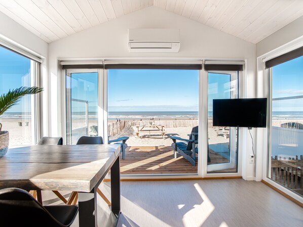 Die Strandbungalows sind komplett ausgestattet. Sie verfügen alle über eine eigene Terrasse mit Gartenmöbeln und eine große Glasfassade. So haben Sie auch von innen einen herrlichen Blick auf das Meer!