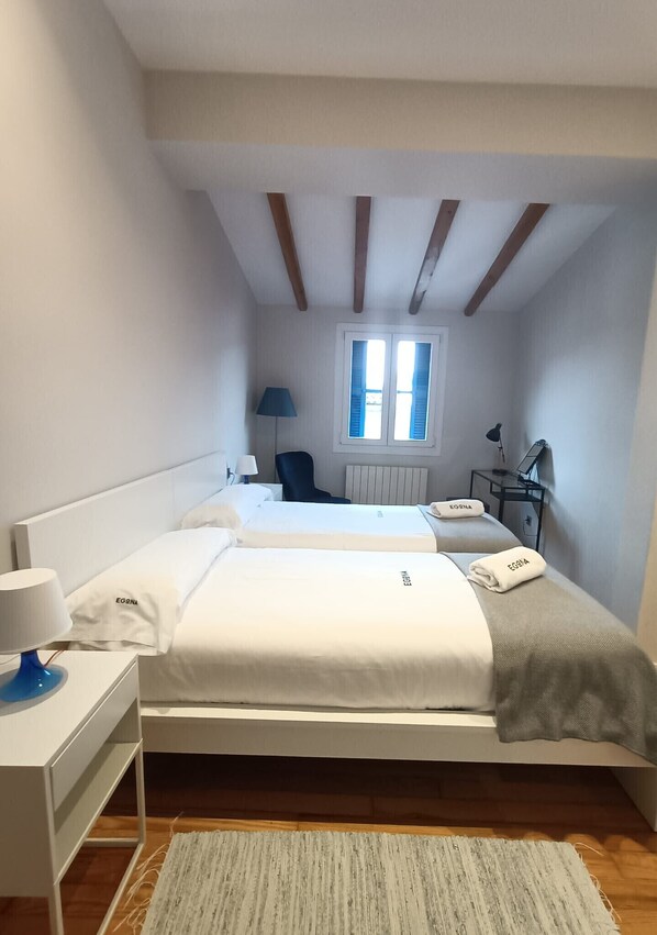 The apartment has 3 rooms, a double, 2 singles and a single bed in the other. The kitchen is fully equipped. It has a bathroom with a shower and a comfortable living room with Wi-Fi.