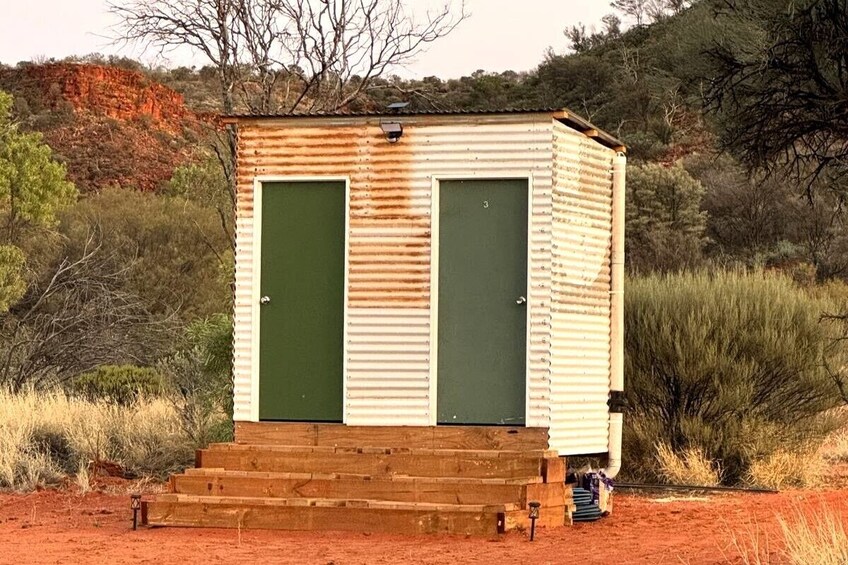 Twin Share Safari Tent mit gemeinsamen Einrichtungen auf dem Campingplatz. Feste Zelte, zwei Einzelbetten, Matratze, Kopfkissen und Bezug, Spannbettlaken, geschützt vor den Elementen. Alleinreisende werden mit einem anderen Passagier zusammengebracht. Der Preis gilt pro Person (Erwachsener oder Kind). Mahlzeiten wie angegeben - 2 x Frühstück, 3 x Mittagessen, 2 x Abendessen (mit Gastbeteiligung). Wir holen dich von allen Alice Springs Unterkünften ab. Bitte rufe an, um dir deine Abholzeit zu sichern - Abholung zwischen 6:00-6:30 Uhr.