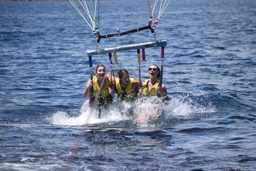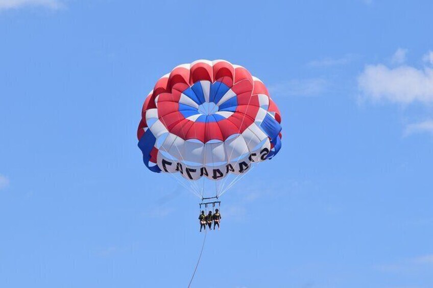 In Parasiling Alicante fahren wir mit dem Boot vom Wartedock der Marina Deportiva des Hafens von Alicante ab. Wir werden die Küste von Alicante mit Musik und Getränken bereisen. Sie fliegen beim Parasailing und können die Aussicht auf die Stadt aus 150 Metern Höhe genießen. Wir schließen ein Getränk in die Aktivität ein und Begleiter können auf das Boot kommen. Im Parachute können bis zu 5 Personen gleichzeitig fliegen und sind 15 Minuten in der Luft. Der Ausbilder wird unten helfen. Kunden werden nicht unbedingt ins Wasser gehen. Es macht sehr viel Spaß, diese Attraktion zu zweit und in einer Gruppe zu genießen.