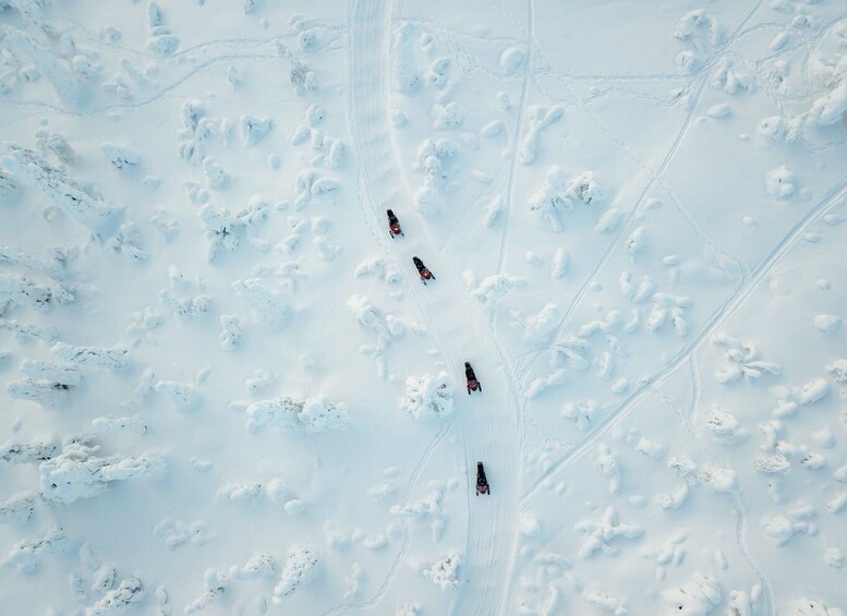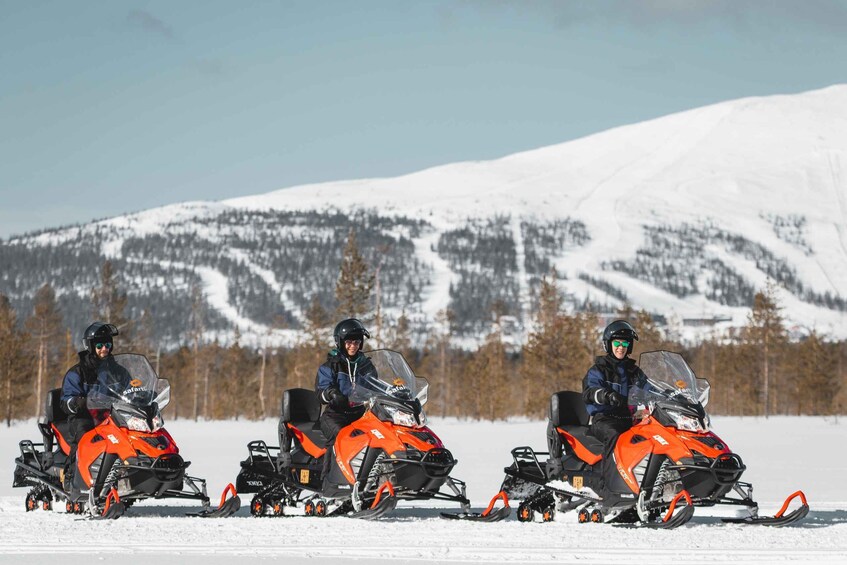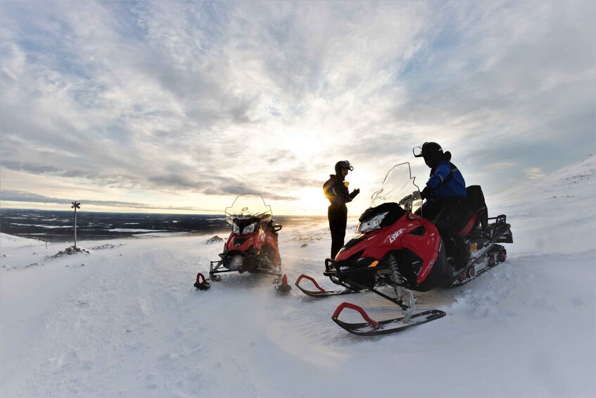 Fahre auf dieser Tour von Levi aus durch die natürliche Schönheit der Wildnis Finnisch-Lapplands. Erlebe die Majestät der winterlichen finnischen Wälder, während du in einem gut gewarteten Schneemobil durch die Gegend gleitest.