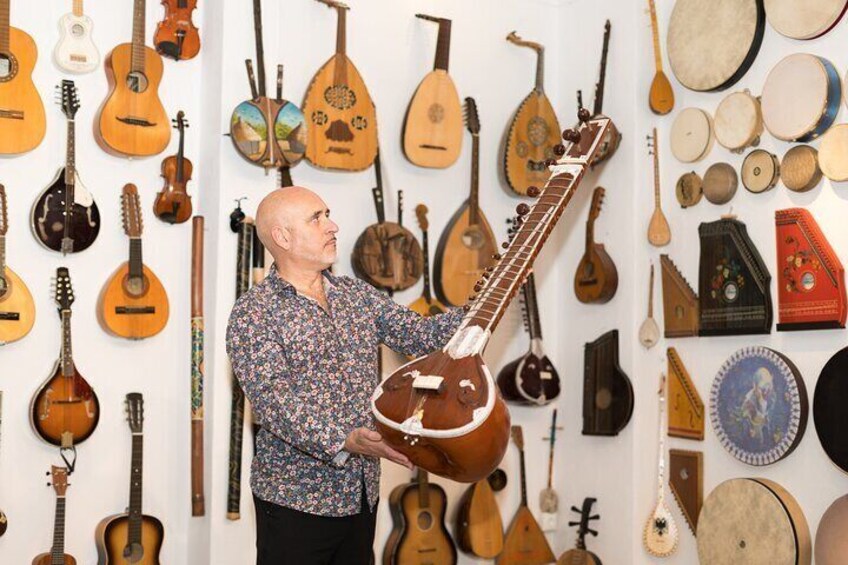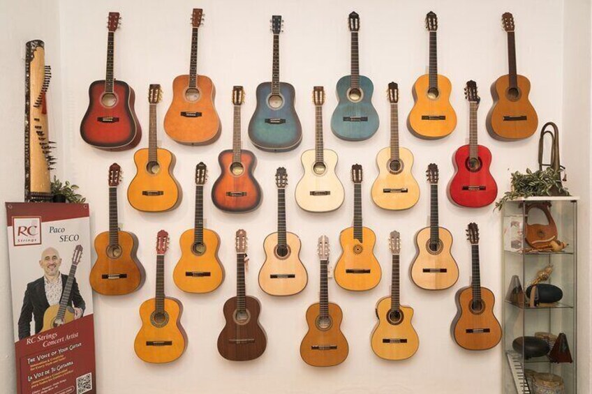 Sobald Sie im Ronda Guitar House ankommen, können Sie, bevor Sie auf Ihr Zimmer gehen, ein Glas köstlichen Ronda-Weins bestellen, das Haus hat viele Hinweise auf lokale Weine. Sobald Sie den Raum betreten, steht Ihnen eine Ausstellung (und ein Verkauf) von Gitarren und Instrumenten aus aller Welt zur Verfügung. Um 19:00 Uhr beginnt das fantastische spanische Gitarrenkonzert mit Paco Seco. Die Dauer beträgt 50 Minuten, danach können Sie dem Künstler Hallo sagen, seine Platten kaufen oder eines der schönen Gitarrenhemden kaufen, die das Haus hat.