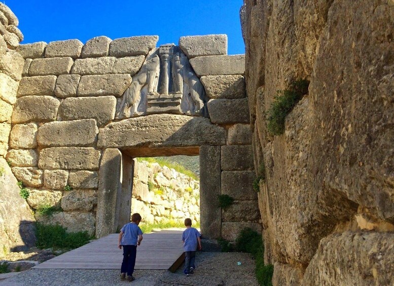 Dann bringt dich der Fahrer nach Mykene, der goldenen Stadt von König Agamemnon, der alle griechischen Städte vereinte, um für ein gemeinsames Ziel gegen Troja zu kämpfen. Mykene war die Stadt, von der aus die mykenische Zivilisation ihren Anfang nahm, und verfügt über eine archäologische Ausgrabungsstätte. Dort besuchst du die Königsgräber der Könige und Königinnen, die zyklopischen Mauern, das Löwentor und die Schatzkammer von Atreas, die Zyklopenmauern.