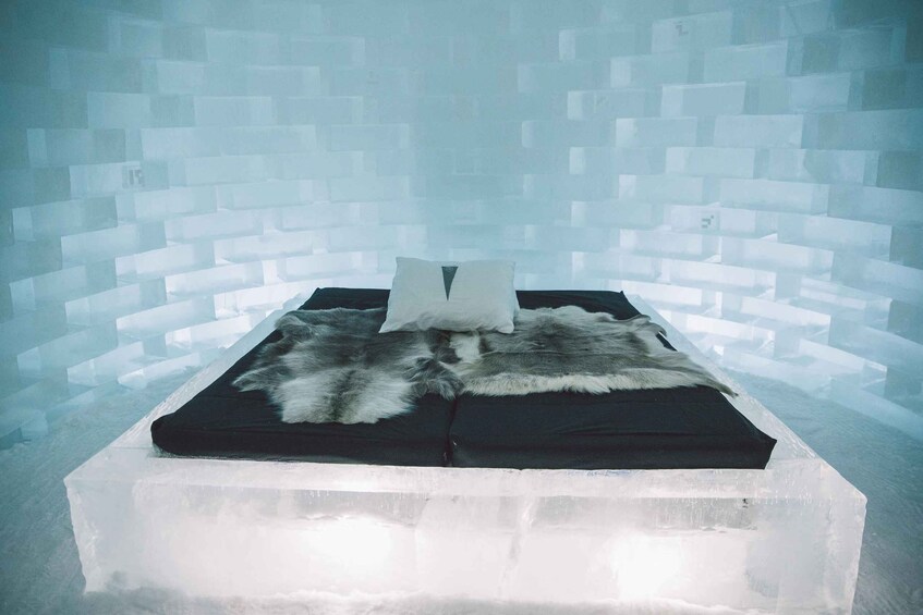 Deine Reise beginnt mit einem Treffen mit einem unserer Unternehmensvertreter, der dich an Bord unseres Busses begleitet, bevor du eine malerische Fahrt durch die Berge und Wälder des magischen schwedischen Lapplands genießt. Bei deiner Ankunft im ICEHOTEL erhältst du deine Eintrittskarte und begibst dich auf eine selbstgeführte Tour und erkundest das erste Hotel der Welt, das komplett aus Eis besteht!