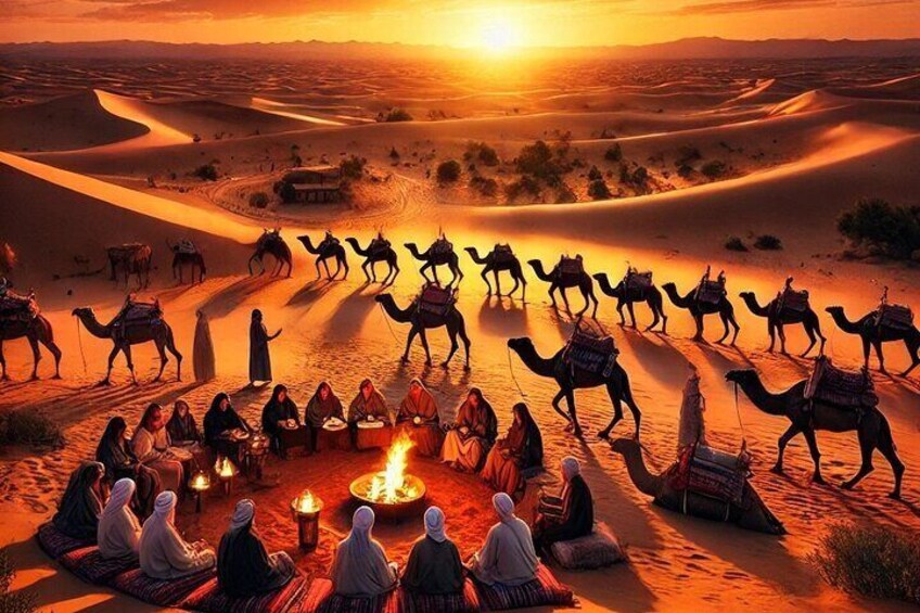 Agafay Wüstentour und Sonnenuntergang Kamelritt mit Abendessen Show