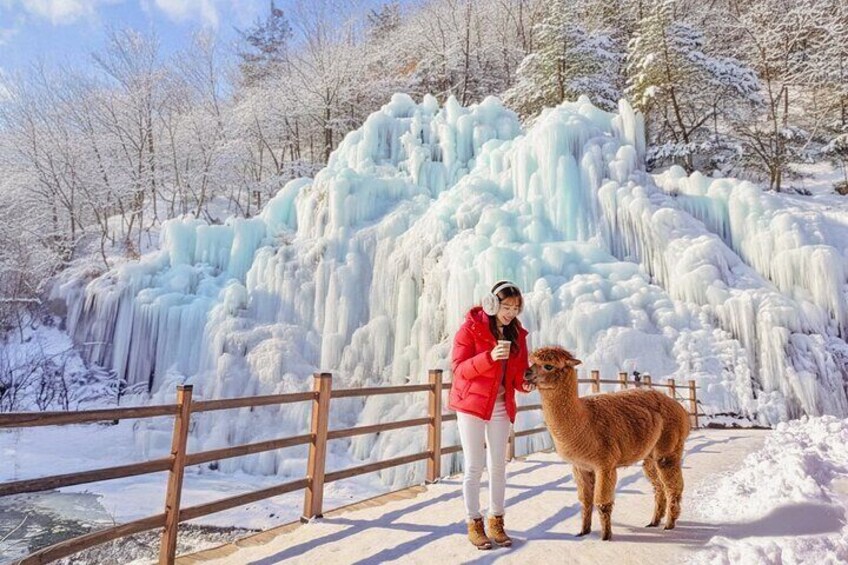 - Der Reiseplan, Reiseroute beinhaltet nur Alpaka World + Nami Island + Eobi Ice Valley Besuche. Wenn Sie entweder Rail Bike oder Erdbeerpflücken hinzufügen, verkürzt sich Ihre Zeit an anderen Orten.
