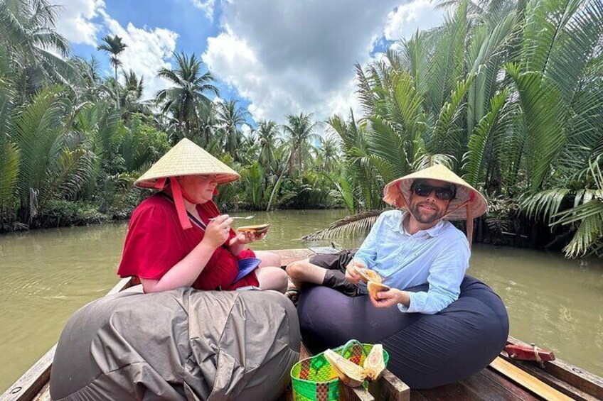 Ben Tre Mekong Zig Zag: Roller, Segelboot und Essen (ganztägig)