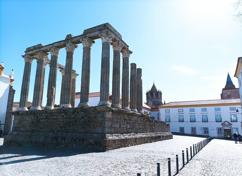 Du verlässt Lissabon und begibst dich auf eine landschaftlich reizvolle Fahrt ins Herz des historischen Zentrums von Évora, einer historischen Stadt in der Region Alentejo in Portugal, die für ihre gut erhaltene Architektur, ihre reiche Geschichte und ihre lebendige Kulturszene bekannt ist. Die menschliche Präsenz in Évora reicht tausende von Jahren bis in die Vorgeschichte zurück, wie zahlreiche archäologische Funde belegen.