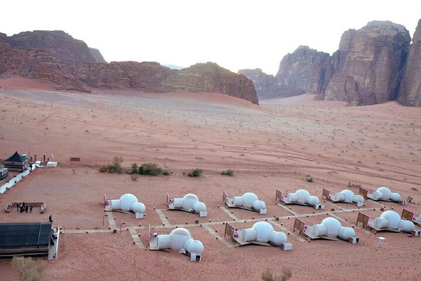 Erkunde die Wüstenwildnis von Wadi Rum auf einem privaten Tagesausflug von Amman aus. Fahre in den Süden zum UNESCO-gelisteten Wadi und genieße eine Tour durch die Dünen, Berge und Canyons in einem 4x4 mit einem Beduinenfahrer. Sieh dir antike Felsinschriften und Highlights wie den Hanging Arch und die Khaza'ali-Quelle an, in der sich Lawrence von Arabien gewaschen haben soll. Tee oder Kaffee in einem Beduinencamp, privater Transport auf der Hin- und Rückfahrt und Abholung vom Hotel in Amman inklusive.