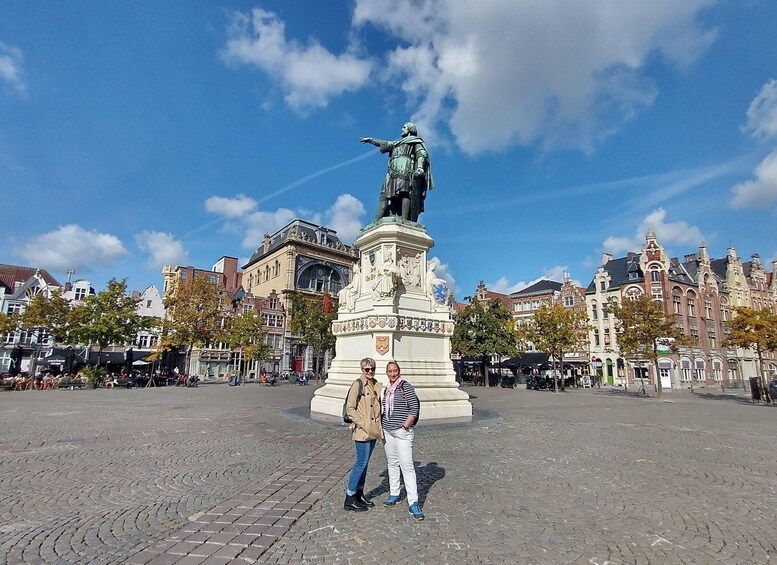 Du beginnst mit einer kurzen Einführung an der Jacob Van Artevelde-Statue, die sich mitten auf dem Vrijdagmarkt befindet. Von dort aus besuchst du das historische Herz der Stadt und hältst an der Graslei, der Korenlei und den drei mittelalterlichen Türmen von Gent (St.-Bavo-Kathedrale, St.-Nikolaus-Kirche und der Belfried von Gent) und erfährst mehr darüber. Erfahre, warum diese beiden Kirchen so nahe beieinander liegen und was es mit dem Goldenen Drachen (nicht dem Bier!) auf sich hat.