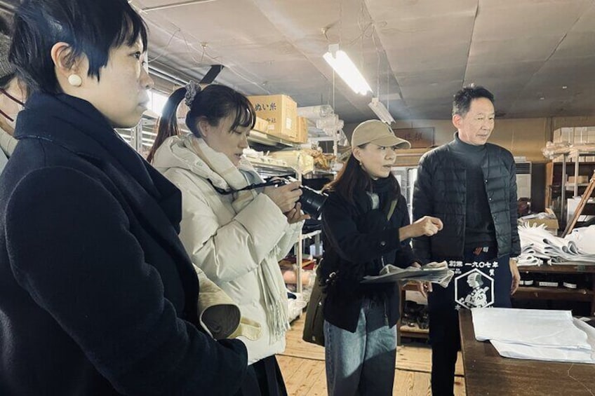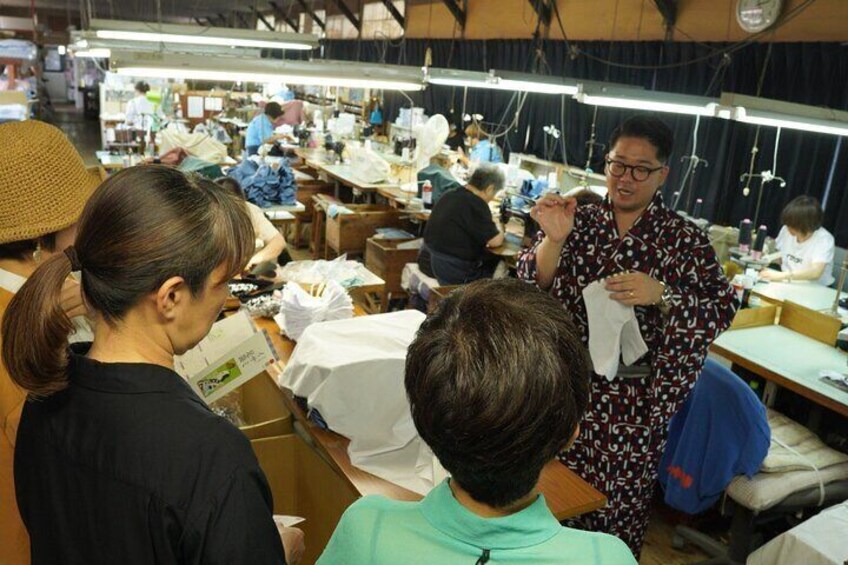 Führung durch die Fabrik Gyoda Tabi Eine Tour durch Gyodas Tabi Schuhe Kultur mit einem Guide führt Sie durch den Produktionsprozess von Tabi Schuhen. Dies ist eine japanische Technik, die eine Reihe von speziellen Nähmaschinen verwendet.