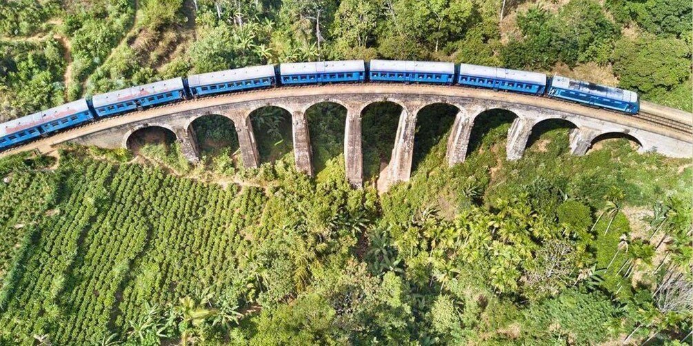 Der Höhepunkt deiner Tour ist eine malerische Zugfahrt von Demodara nach Ella. Schlängel dich durch grüne Teeplantagen und sanfte Hügel und genieße dabei den Panoramablick auf das Ella-Tal. Die Fahrt über die ikonische Nine Arch Bridge sorgt für einen Hauch von Nostalgie, wenn du dieses architektonische Wunderwerk überquerst, das ein Zeugnis der kolonialen Vergangenheit Sri Lankas ist.