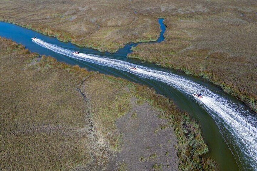 Fahren Sie auf unseren Creek Cat Booten 40 Meilen rund um Hilton Head, den Leuchtturm von Harbour Town, Daufuskie und mehr zurück. Navigieren Sie durch die hinteren Bäche, wo Delfine spielen!