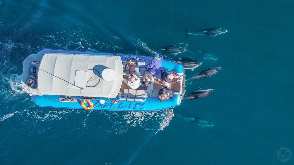 Unser aufblasbares Schlauchboot (Zodiac) bietet dir eine aufregende Fahrt mit einem Lächeln im Gesicht und einer gehobenen Ausstattung, wie zum Beispiel stark gepolsterten Sitzen mit Rückenlehnen, einem speziell angefertigten Teakholzboden und einem großen Sonnenschirm. Und mit seinem niedrigen Schwerpunkt ist dieser Katamaran eine gute Option für Gäste, die sich Sorgen um Seekrankheit machen. Während deiner Safari beobachtest du Delfine beim Springen und Wale beim Gründeln, Seelöwen beim Faulenzen und Vögel bei der Fischjagd, während Meeresnaturforscher mit interessanten Erzählungen für einen spannenden und lehrreichen Ausflug sorgen. Am Ende deiner Walbeobachtungssafari erhältst du eine von Mrs. Capt. Daves berühmte Triple Fudge Brownies als unser Dankeschön!