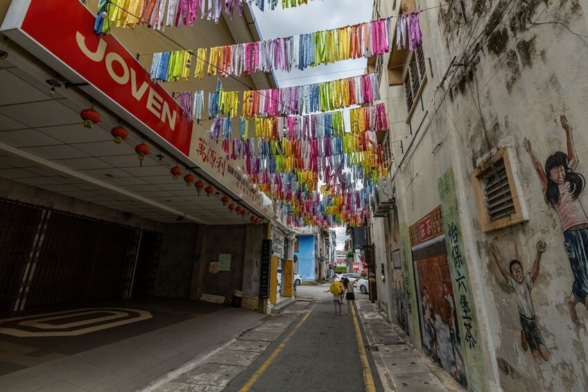 Als Nächstes schlenderst du durch die Ipoh Old Town, wo koloniale Geschäftshäuser neben hippen Cafés und lebendiger Straßenkunst stehen. Der berühmte Milchkaffee und die einheimischen Snacks machen diese Stadt zu einem perfekten Ort für eine Pause. Von dort aus kannst du durch die Concubine Lane schlendern, eine lebhafte Gasse mit bunten Wandmalereien, schrulligen Läden und einer verspielten Energie, die zum Symbol des modernen Ipoh geworden ist.