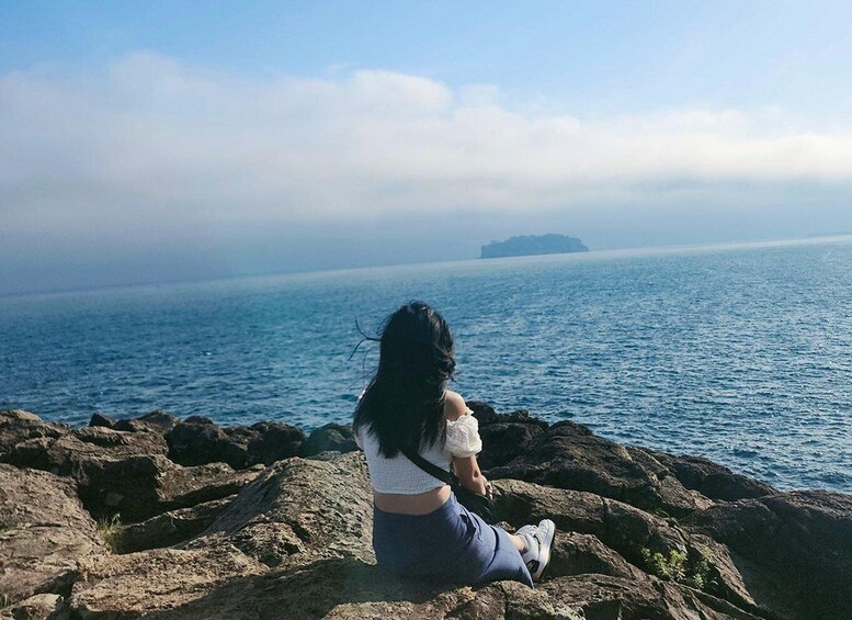 Genieße die malerische Küstenlandschaft entlang der Südküste von Jeju.