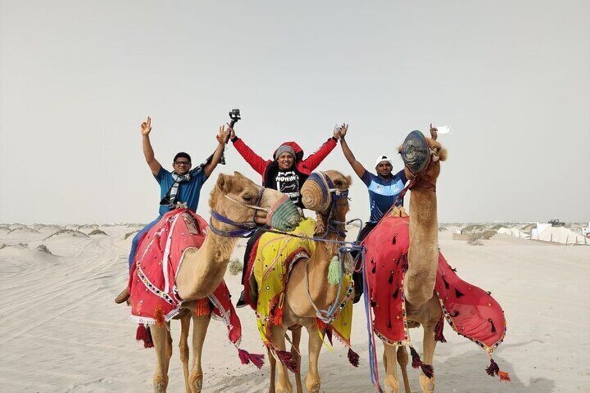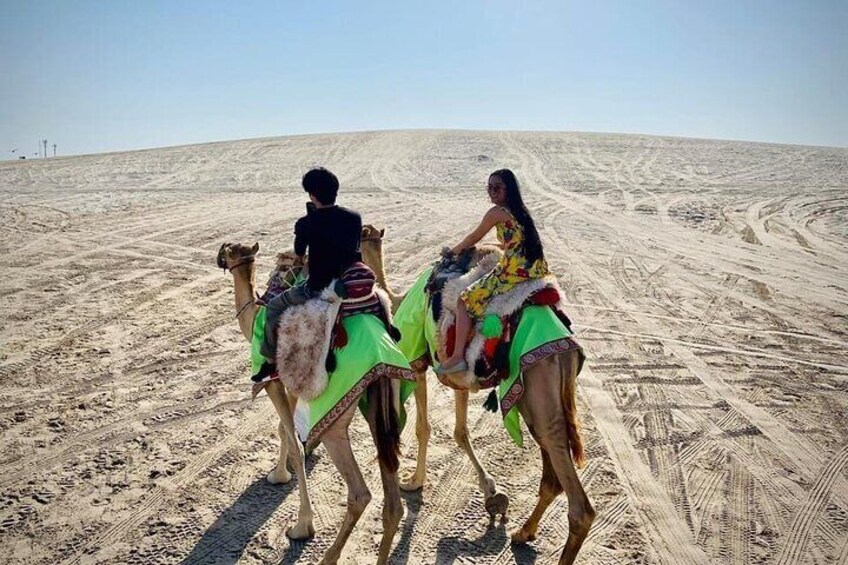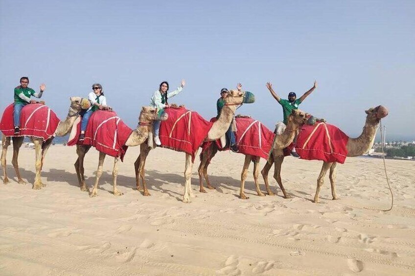 Kameltrekking in den Dünen mit Sonnenuntergang