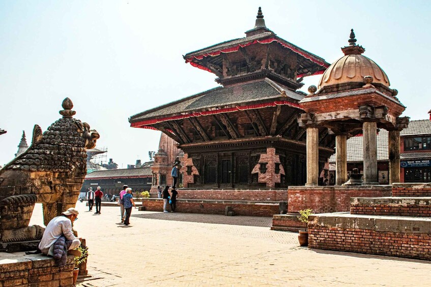 Dieser bemerkenswert gut erhaltene ehemalige königliche Palastkomplex des Malla-Königreichs bietet einen fesselnden Einblick in Nepals reiches künstlerisches, architektonisches und kulturelles Erbe, das durch herausragende Highlights wie den ikonischen 55-Fenster-Palast, das exquisite Goldene Tor, den hoch aufragenden Nyatapola-Tempel und die königliche Statue von König Bhupatindra Malla präsentiert wird.