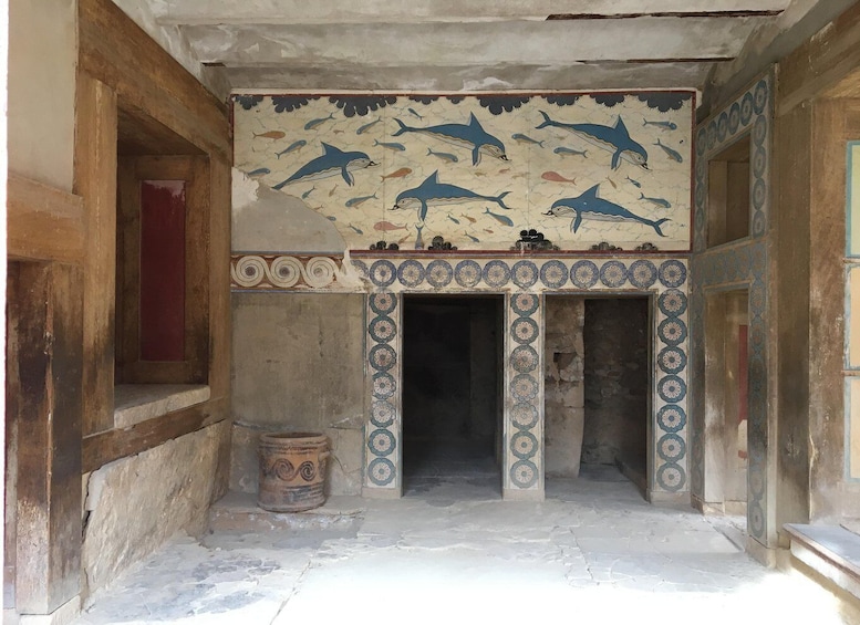 Buche diese Option, um abgeholt und zum Stadtzentrum von Heraklion oder zum Kreuzfahrtterminal zurückgebracht zu werden. Erleben Sie den Palast von Knossos näher bei diesem halbprivaten Rundgang, der auf nur 8 Personen begrenzt ist.