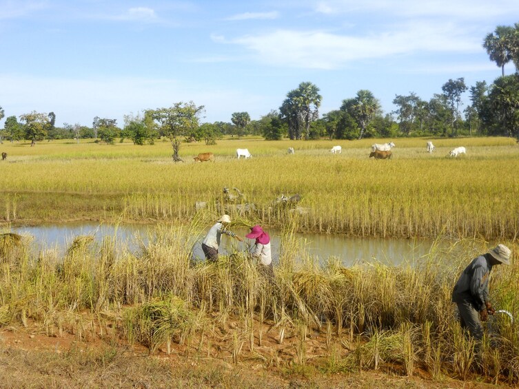 Erkunden Sie während dieser halbtägigen Fahrradtour die landschaftlich reizvolle Umgebung von Siem Reap. Radeln Sie durch die idyllische Natur, genießen Sie die üppige tropische Landschaft und besuchen Sie ein traditionelles kambodschanisches Dorf.