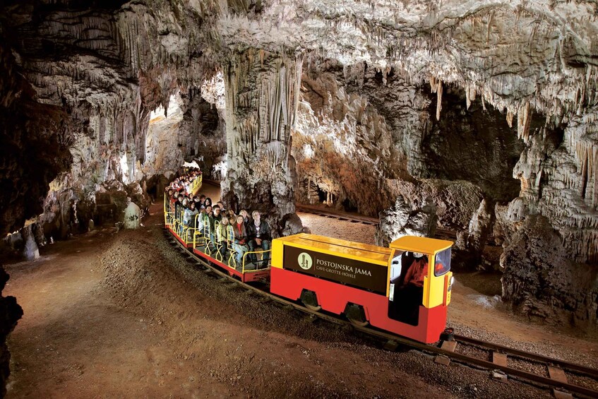 • Genieße eine abenteuerliche Fahrt mit einem Sonderzug in die Höhle von Postojna
