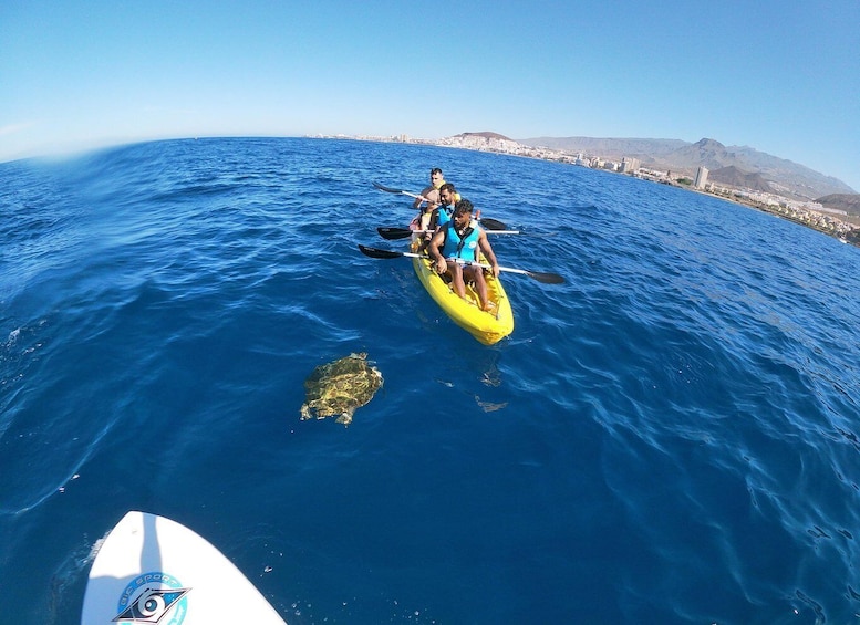 Entdecke die herrlichen Küsten im Süden von Teneriffa. Genieße mit uns auf dieser Kajak- und Schnorcheltour entlang der Vulkanküste und. Du wirst große vulkanische Klippen besuchen, wir werden in kleine und versteckte Höhlen eindringen und beim Schnorcheln und Schwimmen in einem Schildkrötengebiet, wo du viele Fische sehen kannst, nach auf dem Weg kannst du Familien von Delfinen treffen. Die Chance, diese Art von Tieren zu sehen, hängt von der Jahreszeit ab, liegt aber normalerweise zwischen 80% und 90%.
