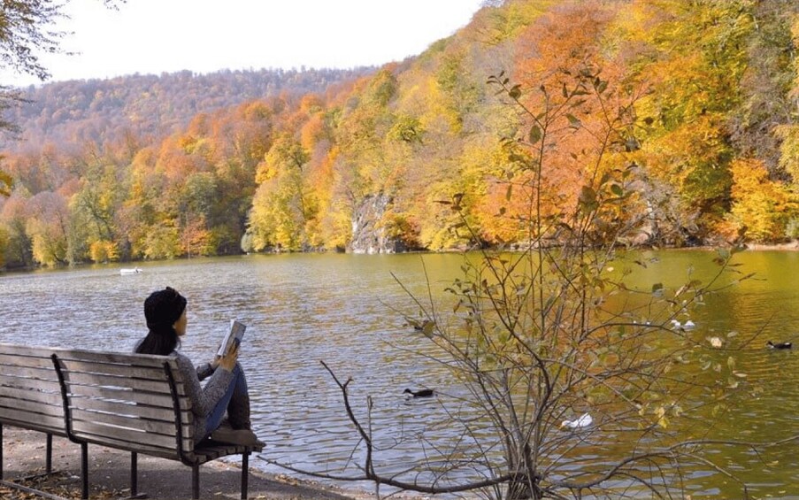 Die Tour führt dich dann in den Norden Armeniens, wo du von wunderschöner Natur umgeben bist. Du kommst durch die “armenische Schweiz” - die Stadt Dilijan. Wir machen einen Halt am Parz-See - der Perle von Dilidschan. Der Parzer See ist zu jeder Zeit des Jahres schön. Im Sommer kannst du dich hier von der Hitze erholen, denn die kalten Strömungen und die dichten Bäume, die den See umgeben, sorgen für Entspannung. Der Parzer See ist berühmt für sein Aussehen: Die spiegelnde Oberfläche reflektiert die Farben des umliegenden Waldes; im Sommer und Frühling - Grüntöne, im Herbst - Rot und Gold, und im schneereichen Winter - eine besondere Schönheit in Blau und Weiß.