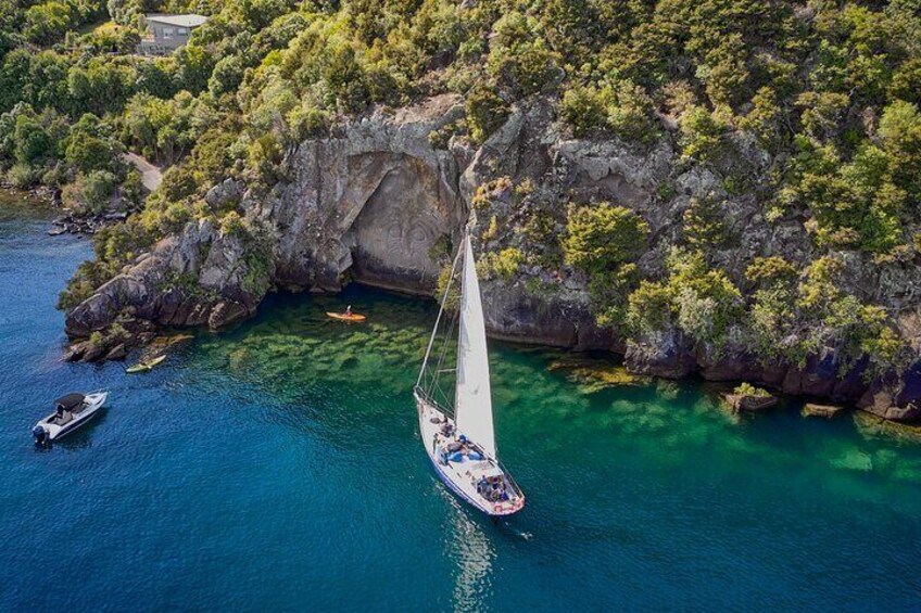 - Bei sich schnell ändernden schlechten Wetter- und Seebedingungen ist es möglicherweise nicht möglich, die Maori-Felszeichnungen zu besichtigen. Diese Entscheidung liegt im Ermessen des Skippers und dient der Gesundheit und Sicherheit aller an Bord des Schiffes