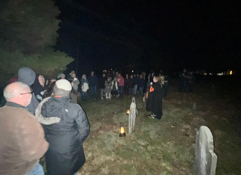 Die Friedhofstour führt die Besucher durch die frühe amerikanische Geschichte in Neuengland in Zeiten von Angst, Krankheit und Krieg. Die Irrungen und Wirrungen hinterließen mehrere Spukerscheinungen und auf dem Friedhof sind seit Jahren Schritte, Stimmen und leibhaftige Erscheinungen zu hören - viele davon erleben die Gäste auf unserer Tour. Die Friedhofstour endet mit einer besonderen gruseligen Überraschung - perfekt für Geschichts- und Geisterliebhaber gleichermaßen. Die Friedhofstour führt die Gäste auf eine Zeitreise zu den Gräbern der Menschen, die Mystic, Mystic gemacht haben.