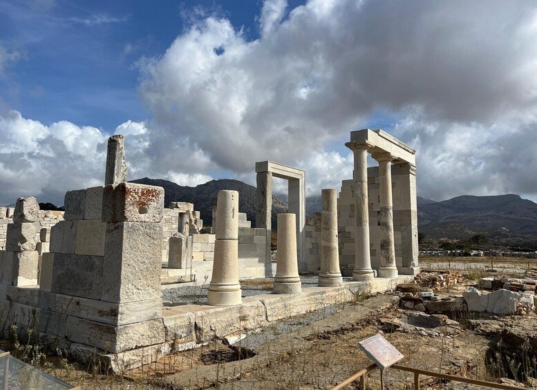 Unsere Tour beginnt mit einem Besuch des Heiligtums von Dionysos, dem antiken Gott des Weins, umgeben von Olivenbäumen, Feigen und Weinreben. Hier erzählt dir dein fachkundiger Führer die Liebesgeschichte von Dionysos und Ariadne, die ekstatischen Tänze der weiblichen Anhänger von Dionysos, die Erntefeste und die Weinbankette, die vor Ort abgehalten werden.Wir setzen unsere Entdeckungsreise fort und genießen eine Panoramafahrt durch die Landschaft, vorbei an felsigen Hängen, grünen Hügeln und Ebenen, bis wir Dimitras Heiligtum mit Blick auf die fruchtbaren Ebenen von Sangri erreichen. Wir bestaunen den Marmortempel der Göttin und erfahren etwas über die ihr zu Ehren abgehaltenen Mysterien und den Mythos von Persephone im Wandel der Jahreszeiten. Wir fahren weiter zur Tragea-Ebene, dem größten Olivenhain der Insel mit hundertjährigen Olivenbäumen - ein kostbares Geschenk von Athene, der Göttin der Weisheit… und erreichen das kleine, unberührte Dorf Kaloxylos. Zum Abschluss unserer Tour widmen wir uns dem Gott der Gastfreundschaft - Xenios Zeus - und probieren die kostbaren Waren der Insel - Olivenöl, Käse, Wein und Honig - Geschenke der alten Götter.