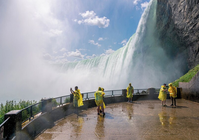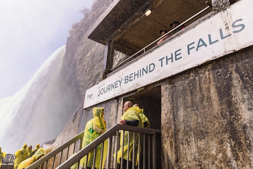 Deine Tour endet am Eingang von Journey Behind the Falls, wo sich dein Guide von dir verabschiedet und dir dein Timed-Entry-Ticket überreicht, mit dem du die Warteschlange für die Öffentlichkeit umgehen kannst, um schneller hineinzukommen. Steige in die Tunnel hinab und betrete die untere Aussichtsplattform, nur wenige Meter von der tosenden Kaskade entfernt. Erkunde sie in deinem eigenen Tempo, während du den Nebel spürst, den Donner hörst und die Wasserfälle aus einem unvergesslichen Blickwinkel erlebst.