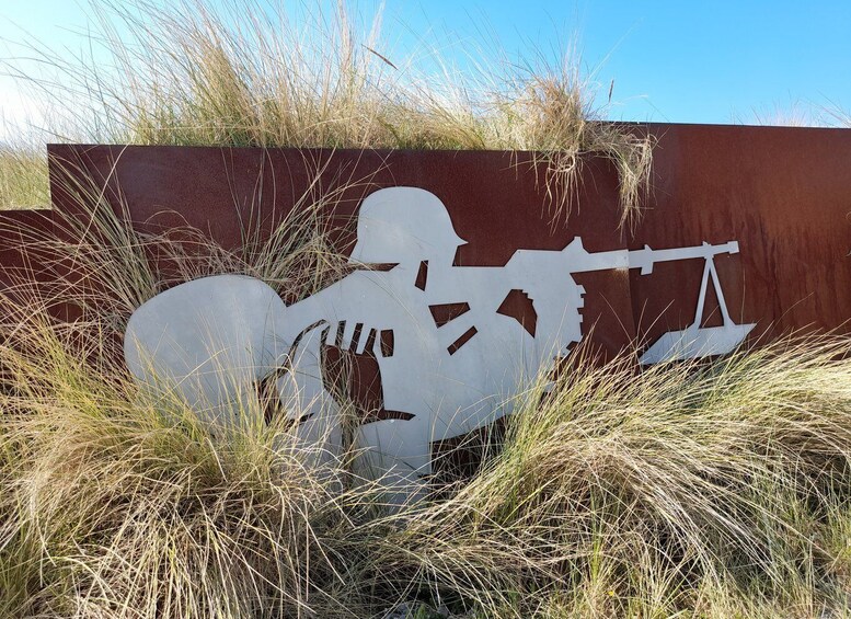 Auf dem Weg zum Juno Beach siehst du zwei Denkmäler, die den North Nova Scotia Highlanders und dem Sherbrooke Fusiliers Regiment gewidmet sind. Ein Halt wird in Hell's Corner eingelegt, wo die Kanadier drei Wochen lang den wiederholten Angriffen der Deutschen und den Bombardierungen widerstanden, bis sie am 4. Juli auf dem Flugplatz von Carpiquet den Sieg errangen. Wir halten in Anguerny (Elm Line), wo die 3 kanadischen Regimenter (La Chaudière, die Queen's Own Rifles und das Fort Garry Horse) ihr Nachtlager aufgeschlagen haben. Ein Inukshuk, ein Stapel menschenförmiger Steine aus der Tradition der Inuit, symbolisiert Brüderlichkeit, gegenseitigen Respekt und Freundschaft zwischen den Menschen.