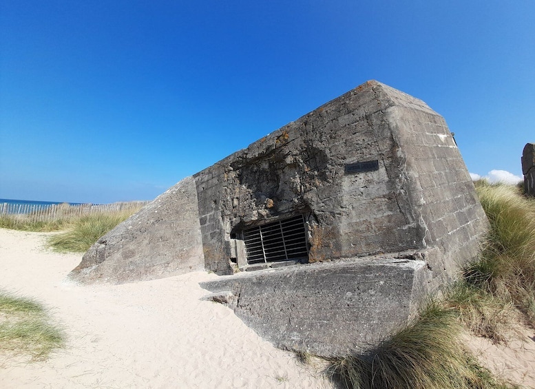 Im Park entdeckst du einige Überreste des Atlantikwalls (Stützpunkte, Tobrouk, Gefechtsstand …), einen Churchill AVRE-Panzer (Armoured Vehicle Royal Engineers), der mit einer 290-mm-Kanone bewaffnet ist, und den an seiner Neigung leicht erkennbaren Cosy's Pillbox, der am 6. Juni 1944 Schauplatz heftiger Kämpfe war.
