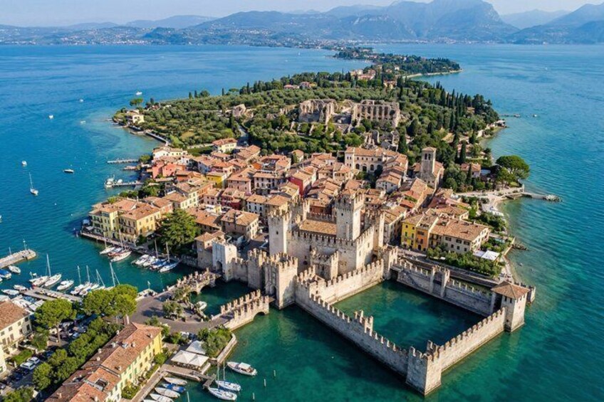 Beginnen Sie im malerischen Sirmione und radeln Sie durch die historischen Straßen. Bewundern Sie die beeindruckende Scaligerburg und genießen Sie die ruhige Aussicht auf den See. *Die Tretzeit während der Tour ist hier inbegriffen.