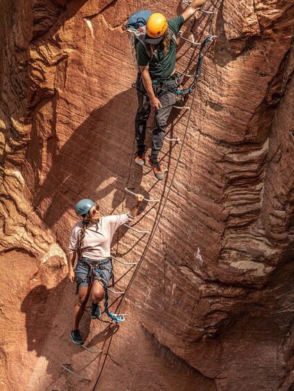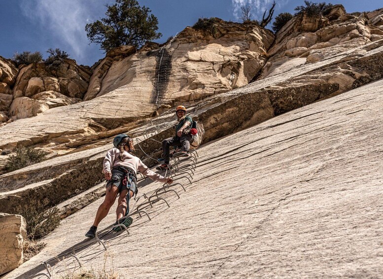 Genieße eine aufregende Via Ferrata Klettertour in Orderville, Utah. Erlebe den Nervenkitzel beim Erklimmen einer steilen Felswand und bahne dir deinen Weg durch eine Reihe von herzzerreißenden Abseilstellen den Berghang hinunter.