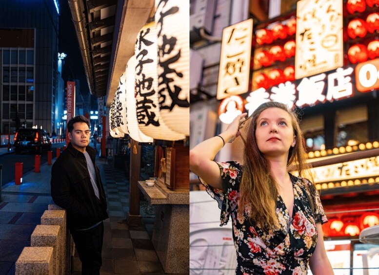 Möchtest du lebendige, energiegeladene Fotos in Osakas berühmtestem Viertel machen? Lass uns Dotonbori, das Herz von Osakas Nachtleben und Straßenkultur, erkunden und dabei deine schönsten Momente festhalten! Von neonbeleuchteten Straßen bis zu historischen Gassen - dieses private Fotoshooting erweckt deine Erinnerungen an Osaka zum Leben.