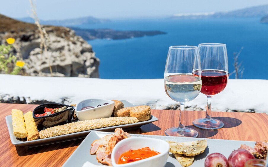 • Probiere 12 verschiedene Weine, darunter den berühmten Assyrtiko und den Vinsanto