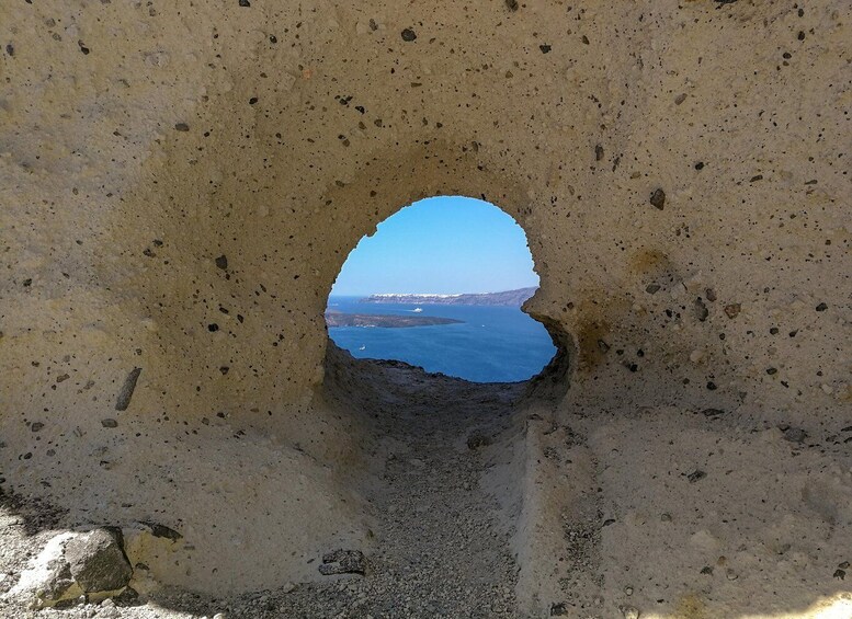 Nach diesem tollen Erlebnis ist es an der Zeit, einen der romantischsten Orte der Insel zu besuchen. Das Herz von Santorin ist der perfekte Ort, um die romantischsten Bilder mit deinem Liebsten einzufangen. Die Sankt-Nikolaus-Kapelle befindet sich gleich unterhalb und bietet dir einen fantastischen Blick auf die Klippen und den Vulkan.