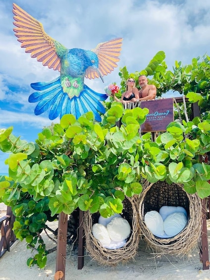 Danach geht es zu unserem Beach Club auf Rose Island, wo wir einen All-Inclusive-Strandtag mit Hängematten, Liegestühlen, Strandspielzeug, einer Tiki-Bar und funky Insel-Jams erleben. Besser geht's nicht. Es ist wirklich der perfekte Tag!