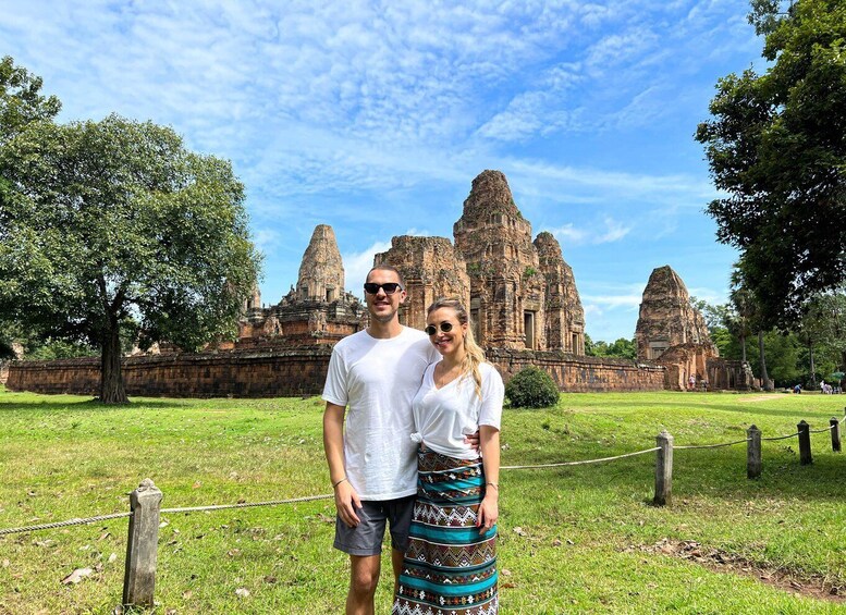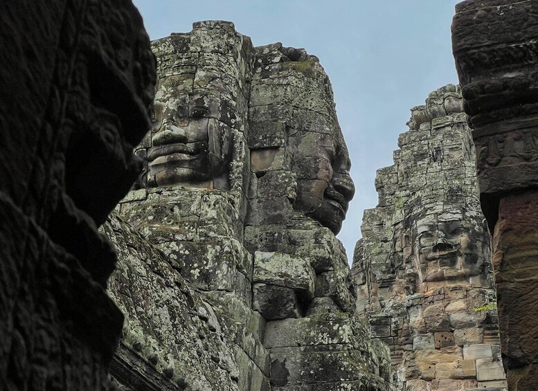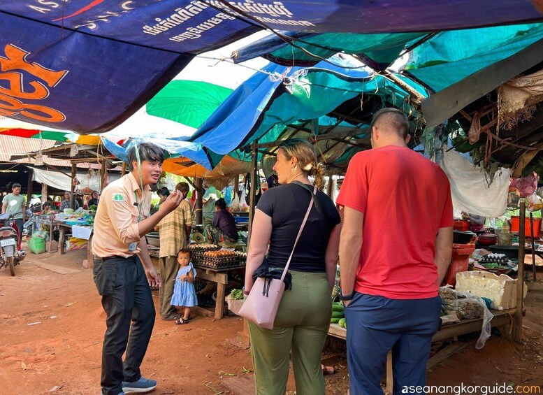 Du wirst früh von deinem Hotel in Siem Reap abgeholt und fährst direkt zum Sonnenaufgang nach Angkor What. Vergiss deine Kamera nicht, um ein ikonisches Foto vom Sonnenaufgang in Angkor What zu schießen, für das sich das frühe Aufstehen lohnt. Nach Sonnenaufgang verbringst du etwa 1,5 Stunden damit, Angkor What zu erkunden, während dein Guide dir die kulturelle Bedeutung der antiken Stätte erklärt. Der riesige buddhistische Tempel ist das größte religiöse Monument der Welt und stammt aus dem 12. Danach legst du eine kurze Pause ein, um ein authentisches Frühstück in einem lokalen Restaurant zu genießen. Genieße ein echtes kambodschanisches Frühstück mit Khmer-Nudelsuppe und traditionellen Desserts wie Palmkuchen und Dampfreisknödel mit Palmzucker. Nach dem Frühstück kehrst du zum Jeep zurück und setzt deine Tour bei den Dschungeltempeln Ta Prohm und Ta Nei fort. Noch in ihrem ursprünglichen Zustand erobert der Dschungel den Komplex zurück, indem Pflanzen, Lianen und riesige Wurzeln das Gelände übernehmen. Fans des Films “Lara Croft: Tomb Raider” aus dem Jahr 2001 wird dieser Ort bekannt vorkommen. Weiter geht es zum Bayon-Tempel und seinen ruhigen Steingesichtern. Der Tempel unterscheidet sich architektonisch deutlich von Angkor What und bietet auf Schritt und Tritt tolle Fotomotive. Du wirst auch das beeindruckende Siegestor von Angkor Thom besuchen. Das steinerne Bauwerk wurde von Jayavaram VII. errichtet, um die Stadt vor eindringenden Nachbarn zu schützen, und das Tor hat die Zeit überdauert. Bevor der Jeep dich zu deinem Hotel zurückbringt, hältst du an einem lokalen Markt in Siem Reap, um die Einheimischen beim Kauf und Verkauf von Produkten, Kunsthandwerk und Kleidung zu beobachten. Wenn du möchtest, kannst du kambodschanische Gerichte wie Klebreis, Kuchen, Früchte und Eiernudeln probieren. Wenn du dich abenteuerlustig fühlst, kannst du auch gebratene Spinnen und Skorpione probieren, die auf den südostasiatischen Märkten häufig angeboten werden.