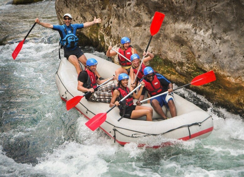 Finde zurück zur Natur und genieße atemberaubende Ausblicke auf die schönen Landschaften Dalmatiens bei einem Rafting-Abenteuer auf dem Fluss Cetina. Halte unterwegs an, um zu schwimmen und von den Felsen zu springen. Halte Ausschau nach wilden Tieren und Pflanzen und kühle dich bei deiner Erkundung unter einem Wasserfall ab.