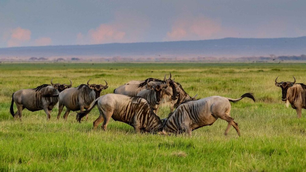 Wenn die Sonne aufgeht, fährst du in den berühmten Amboseli-Nationalpark, der für seine atemberaubenden Aussichten und seine reiche Tierwelt bekannt ist. Bestaune die majestätischen Elefanten, die vor der Kulisse des Kilimandscharo frei umherstreifen. Dein erfahrener Guide gibt dir Einblicke in die Verhaltensweisen und Eigenschaften der verschiedenen tierischen Bewohner des Parks.