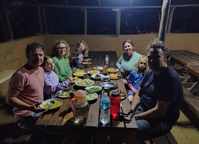 Nach dem Mittagessen begibst du dich auf eine 3 km lange Wanderung durch die Berge, die dich zu deinem Campingplatz inmitten der Knuckles Mountain Range führt. Am Abend machst du eine Teepause in der Nähe des ruhigen Knuckles-Wasserfalls, gefolgt von einem Lagerfeuer und dem traditionellen Backwoods Man Cooking.