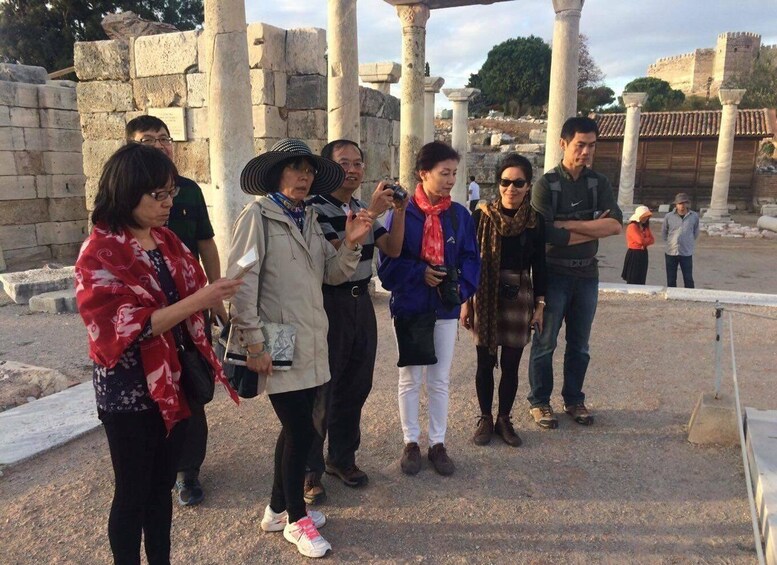 Fahre nach Ephesus und besuche die antike Stadt Ephesus. Dort spazierst du durch die Geschichte, entlang von Marmorstraßen, die von wunderbaren öffentlichen Gebäuden wie den Thermen der Scholastika, der Bibliothek des Celsus, dem Hadrianstempel und dem Theater gesäumt sind. Später fahren wir zum Haus der Jungfrau Maria, wo sie ihre letzten Tage verbrachte und die Himmelfahrt stattfand. Danach besuchst du die Johannes-Basilika und den Artemis-Tempel, eines der sieben Weltwunder der Antike. Übernachtung in Kusadasi.