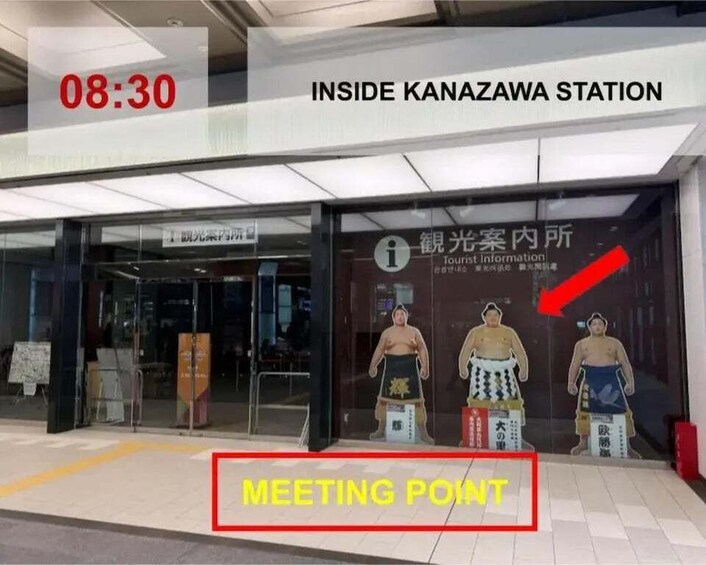 Diese Tour beginnt um 8:30 Uhr am Bahnhof Kanazawa, wo dich dein Reiseleiter vor dem Informationszentrum in der Nähe der Shinkansen-Ticketschranken trifft.