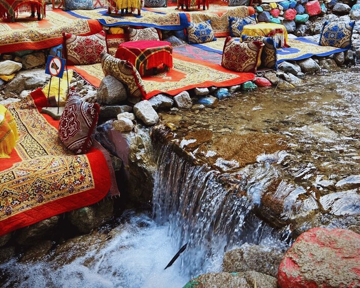 Der Ausflug geht weiter, wenn du in Setti Fatma ankommst, einem charmanten Dorf im Herzen des Tals. Hier führt dich ein einheimischer Guide auf einer einstündigen Wanderung zu einem atemberaubenden Wasserfall. Wer nicht wandern möchte, findet am Flussufer einen ruhigen Rückzugsort, um zu entspannen und die Schönheit der Natur zu genießen. Danach genießt du ein köstliches Essen am Fluss (Kosten nicht inbegriffen), bevor es zurück nach Marrakesch geht, wo du voraussichtlich um 17:00 Uhr ankommst.